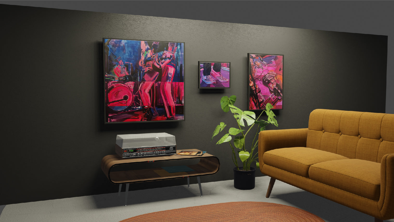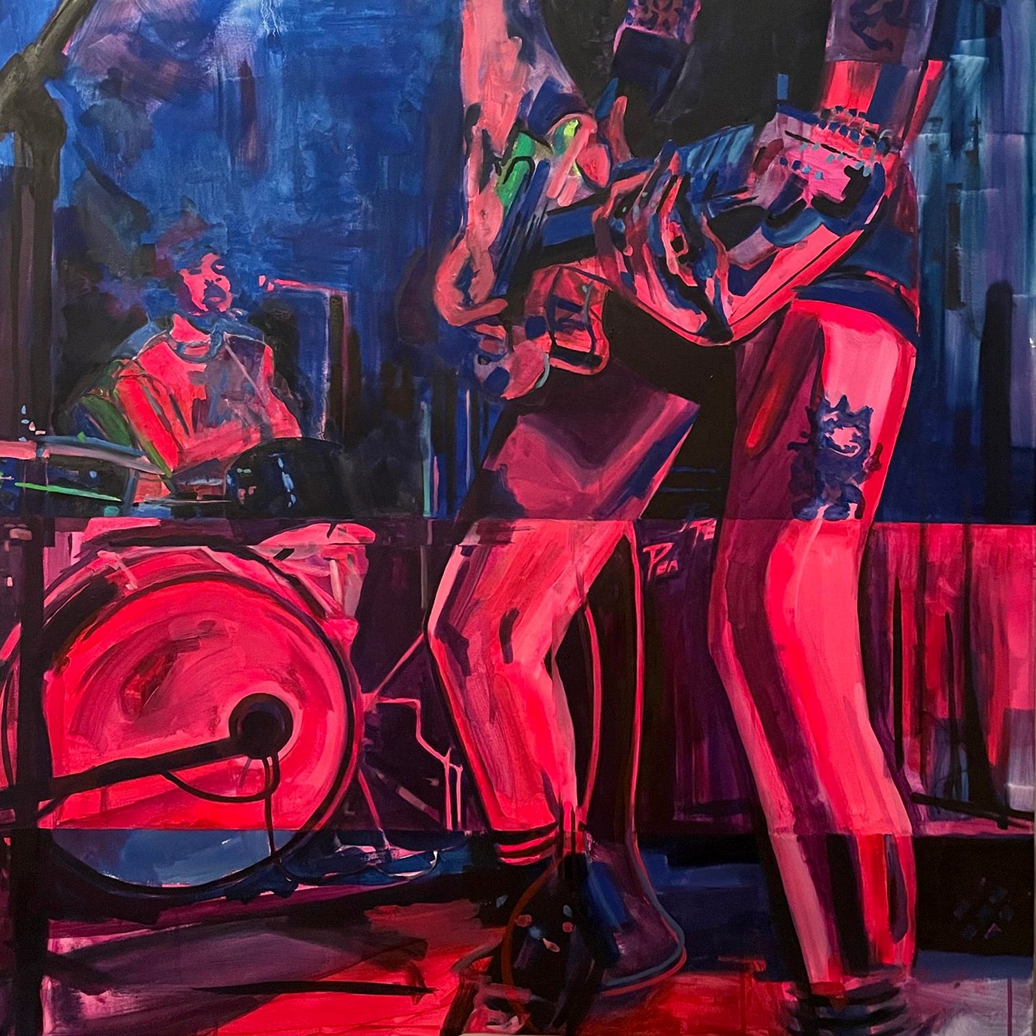 92 x 92cm acrylic and oils on canvas with black pine framing