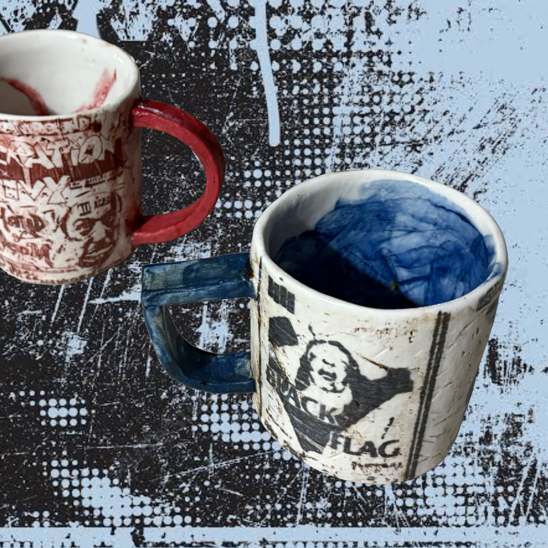 Handmade with DIY transfers of old school posters from Black Flag, Operation Ivy, and Fugazi.